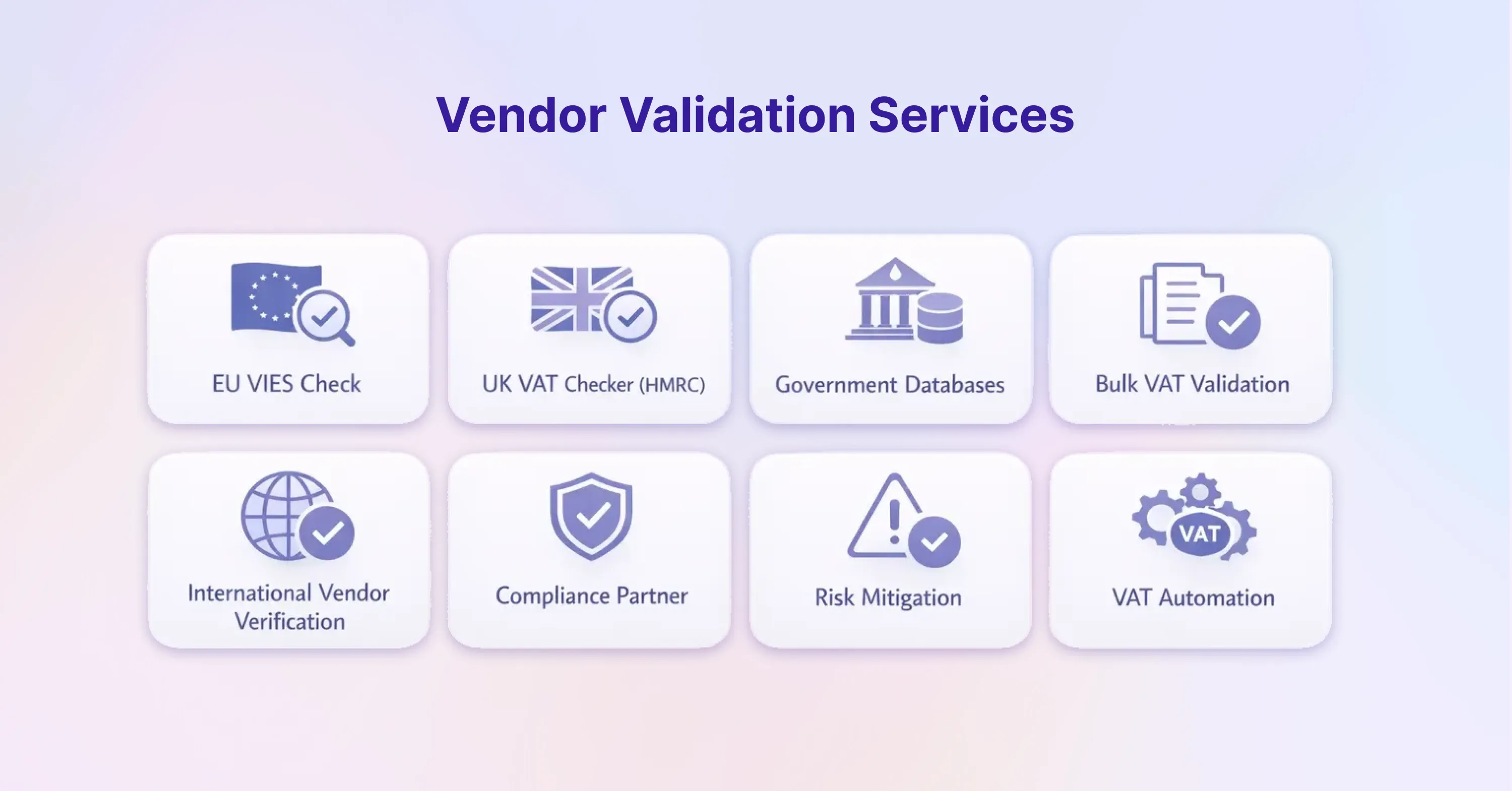 Tools and platforms used to verify the validity of a supplier's Value Added Tax (VAT) identification number. These services query official government databases (like VIES in the EU or HMRC in the UK) to confirm a business's registration status, ensuring that the buyer can legitimately reclaim input tax and avoid complicity in tax fraud.
