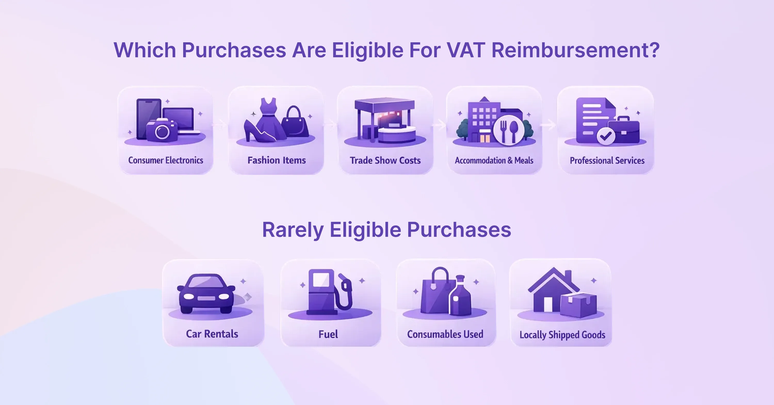 Key takeaway: if you do not fit one of the three categories above, the VAT reclaim path is closed. If you do, the next question is, “Which purchases qualify?” Let’s move on.